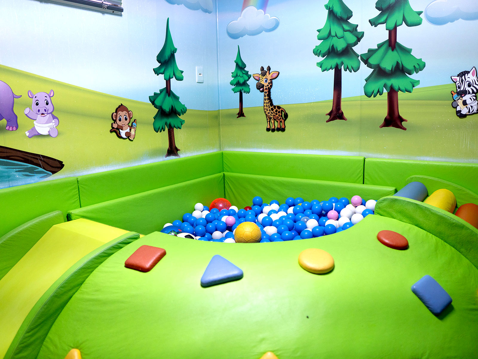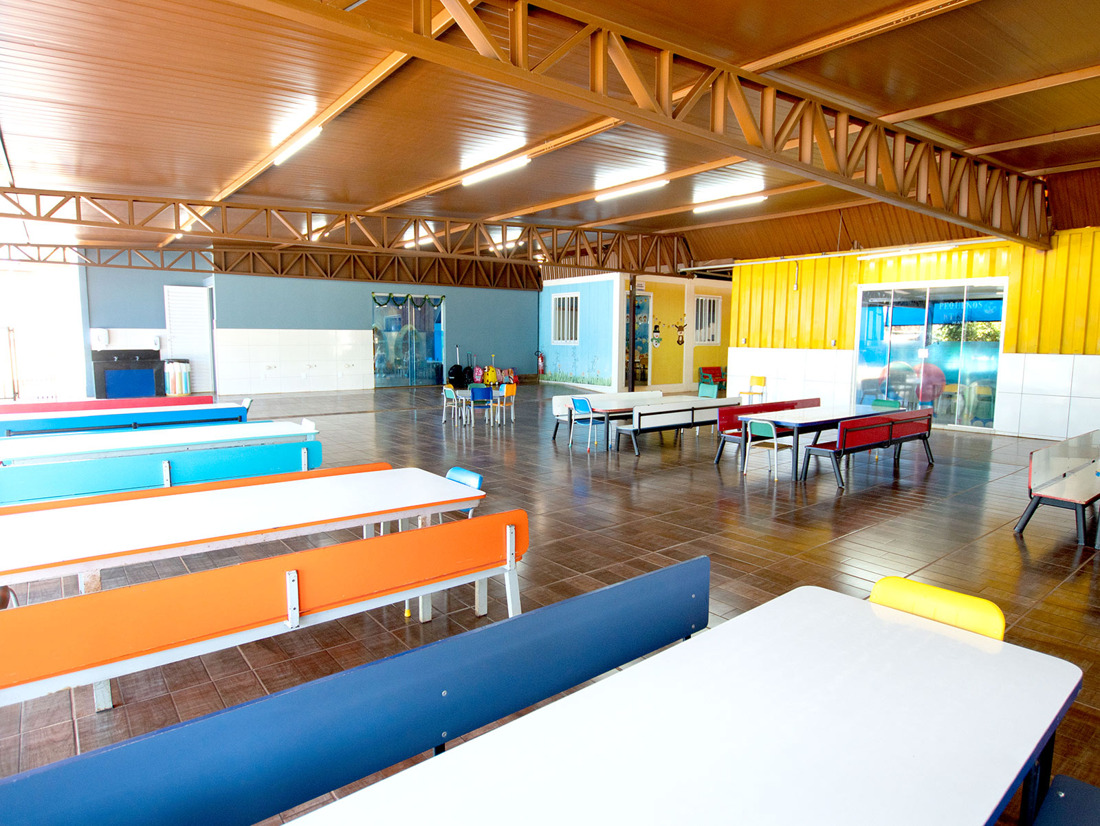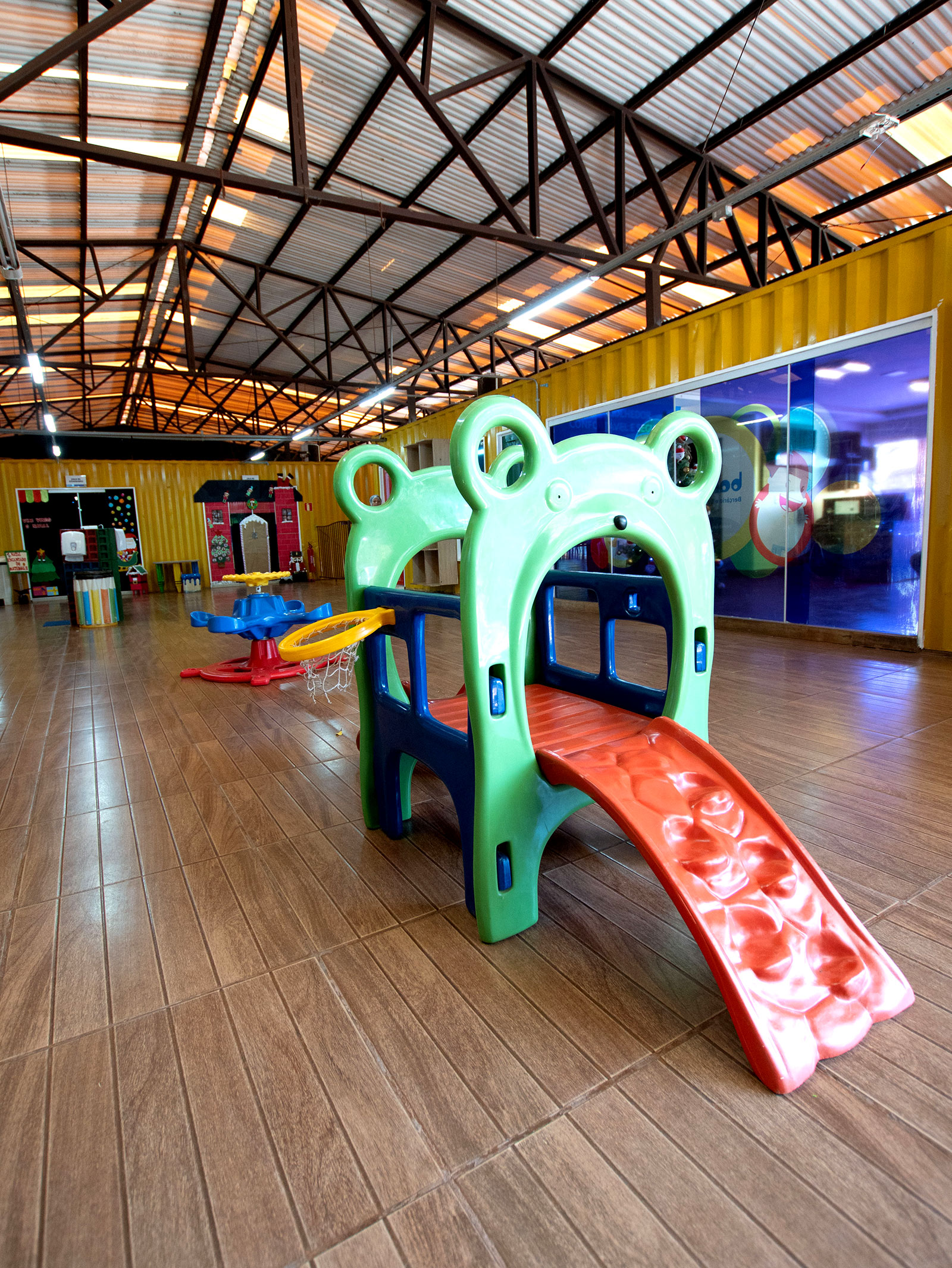 Oferecemos ambientes preparados para diferentes experiências — salas amplas, horta, parque aquático, espaços de artes, culinária e contato com a natureza.